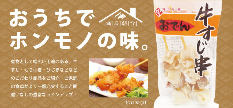 国内でていねいに加工したもち巾着は、ひとつひとつてづくり。そんな安心感もきっとおいしさの秘密です。伊藤食品の商品には、ふっくらしたもち巾着のように、中にぎっしりとこだわりが詰まっているんです。